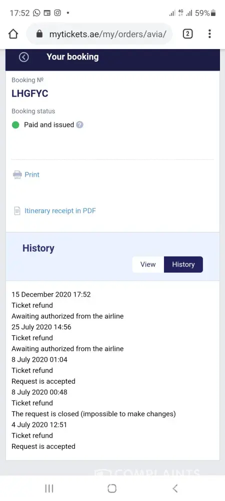 Then I received another letter from mytickets.ae stating that my refund request was denied and they again were asking for same details.