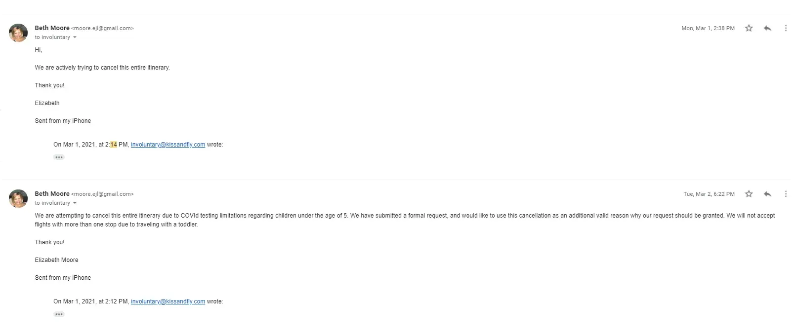 -In March 2021 received another alert from them that another leg of our trip was cancelled by airlines, and again we requested information regarding our refund request via email.