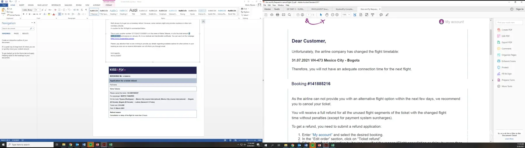 On Sep 22 2020 I and my girlfriend booked the flight (Booking #[protected]) from Los Angeles to Antalya) via KissAndFly travel agency. On Oct 18, 2020, we received the email from KissAndFly stating that our flight got canceled, therefore we requested a refund for the purchased tickets. ($833)