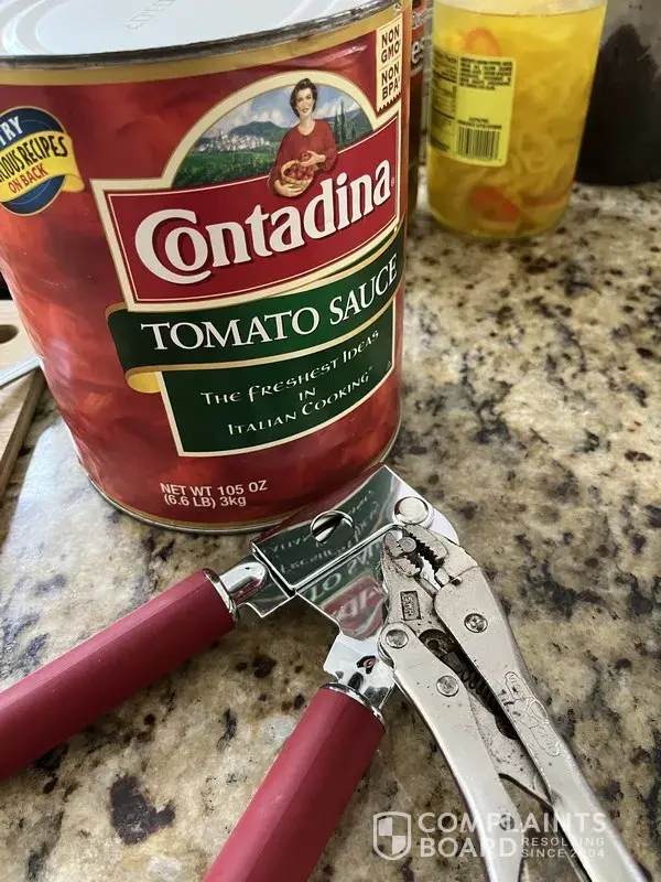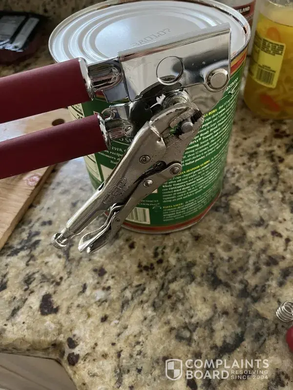 I purchased this manual can opener about two months ago to replace a rather old opener I had. While using this 'new' opener on a large tomato sauce can, the handle made a pop and now just spins around. I had to clamp a small ViceGrip pliers to the shaft to finish opening the can. As a forty plus years as a mechanical design engineer, I can see the small size splines on the shaft and the thin wall of the plastic handle are woefully undersized for this application. I am guessing this was made in China. If so, the original design might have been done in the USA and then sent abroad for manufacture, but was cut back to save a penny or two. Also I doubt any strength testing was done.