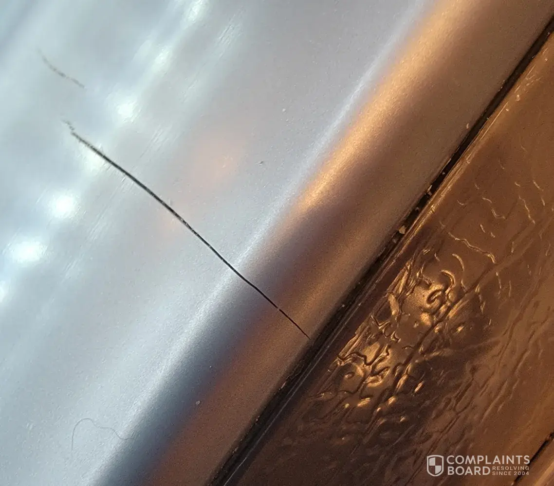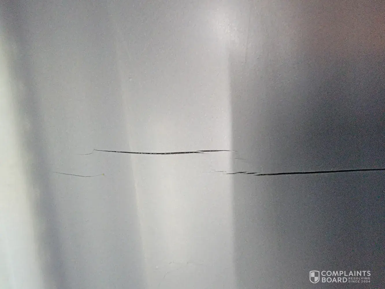 Purchased French door refrigerator on 11/21/21, Noticed cracking on the interior liner in mid October. Contacted NSI who advised they are unable to cover this issue, Contacted KitchenAid and they advised to have appliance repair company come out and document cracking. Lake Appliance came out took pictures and submitted pictures and report to KitchenAid. They called back and advised that the manufacturer would not cover the repair. High end appliance with interior cracking appears to be a problematic issue.