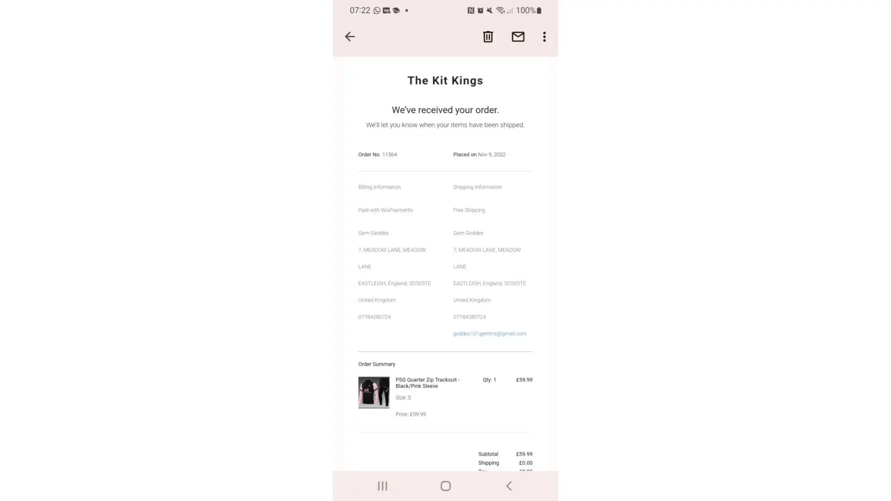 I ordered 2 x psg tracksuits for £99 on 12th November for my nephews birthday and still have not received anything. I had the order confirmation straight away but nothing after that! It ruined everything as it was for a special 16th birthday and I couldn’t afford then to buy another present. I’ve tried phoning, emailing messaging on Instagram and I’ve not had any correspondence 6 months later.