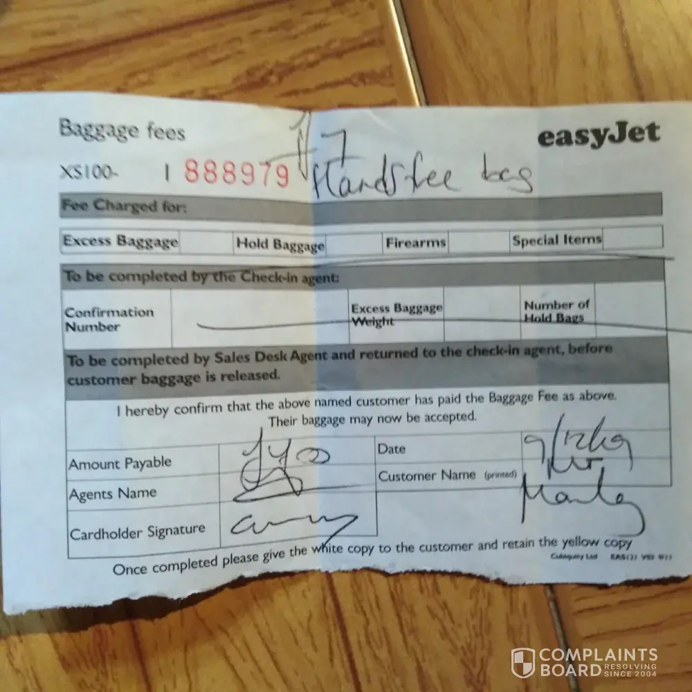I have attached the receipt I got from Easy Jet for extra baggage to this message and I will forward you the email payment link for the 30 euros I paid for the information to be changed on my booking, I would like this money refunded in full. My reservation number was [protected]