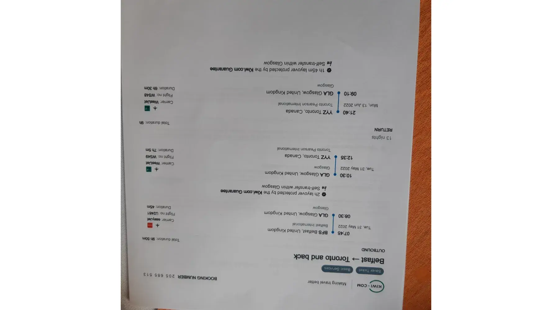 On the 08/03/2022 I booked a trip from Belfast, Northern Ireland (BFS) to Toronto, Canada (YYZ) through Skyscanner.com, which connected me to Kiwi.com. It was through this company (Kiwi.com) that I booked my flights.