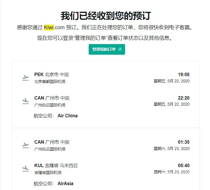 Desired outcome: I would like a full refund of money i have paid to Kiwi.com