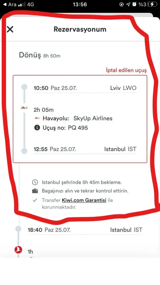 Our return flight which with Skyup airlines cancelled the flight. Than regarding could not refund all flight moneys. We should get new flight from Lviv to İstanbul again with more cost.