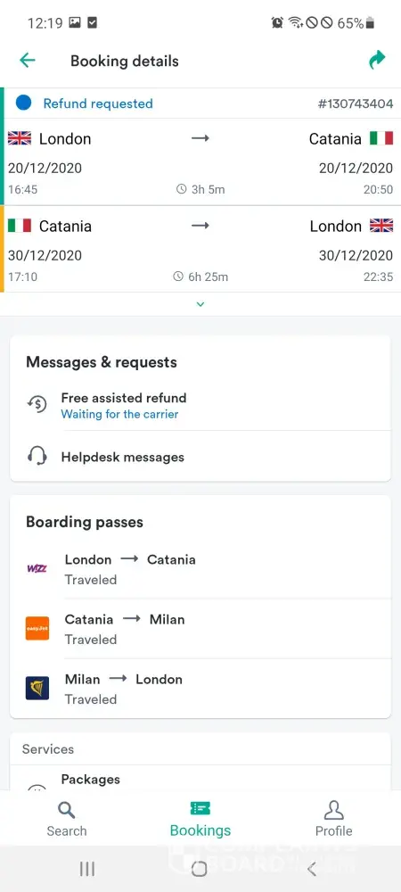 BOOKED A packages FLIGHT FOR 20/12/20, flight got cancelled and therefore all the following flights.