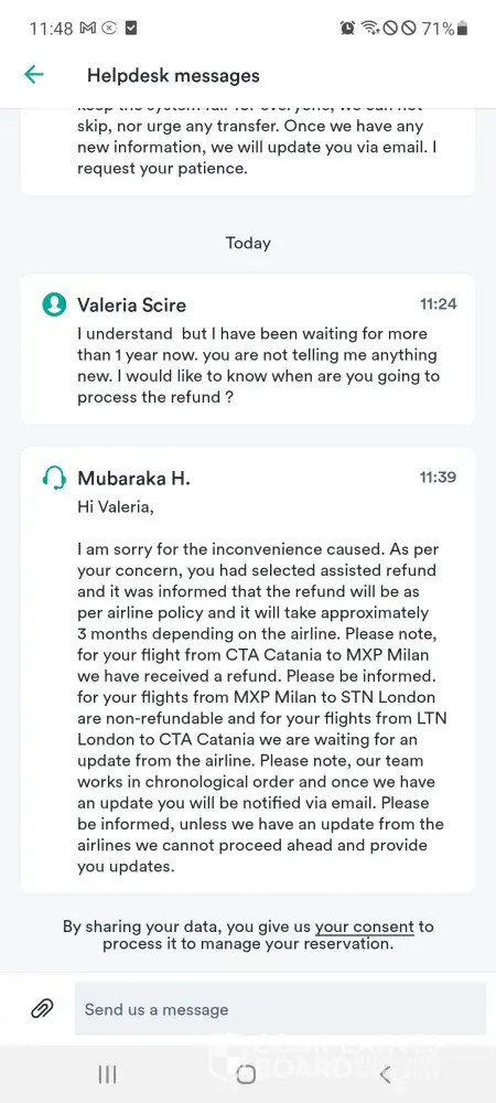 They always reply to me that i need to wait and that they are waiting for the flights company to give an update or to issue the refund.