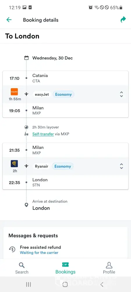 This KIWI website is a fraud, they are selling ticket that can not be accepted at airport as its not issued for real at their end... and they say its refunded but actually its not and I can not get my money back from them...