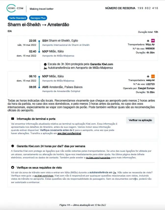 I have booked and paid for a flight with Kiwi on 12-02-2022. I bought a trip from Sharm El Sheihk (Egypt) to Amsterdam (Netherlands) with the Plus insurance, but I inserted my e-mail wrong. I have my reservation number which is [protected] but I cannot contact them since they only answer phone calls 14 days before the trip, I cannot use the chat or the e-mail because I cannot access my flight from the app (since it's not connected to my email).