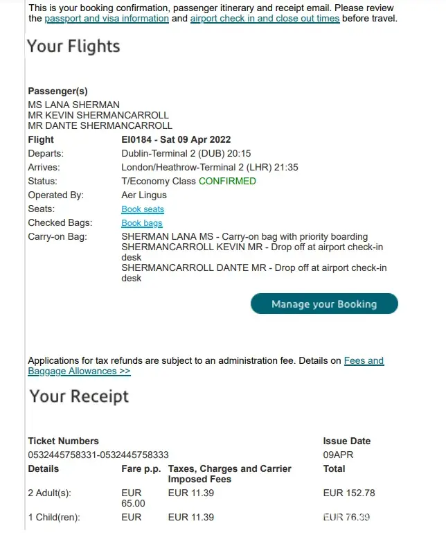 Desired outcome: I need flight details and check in info ASAP