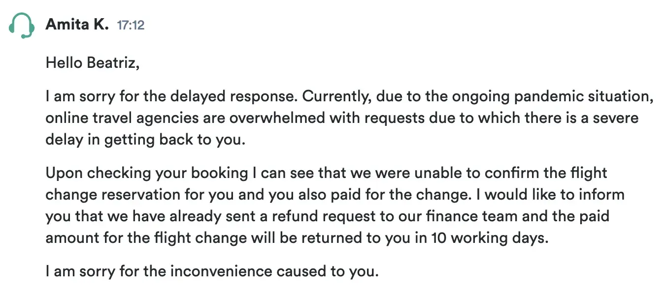 I requested a flight change, the money was taken from my account, and then I received an email saying that they had failed to make the change.