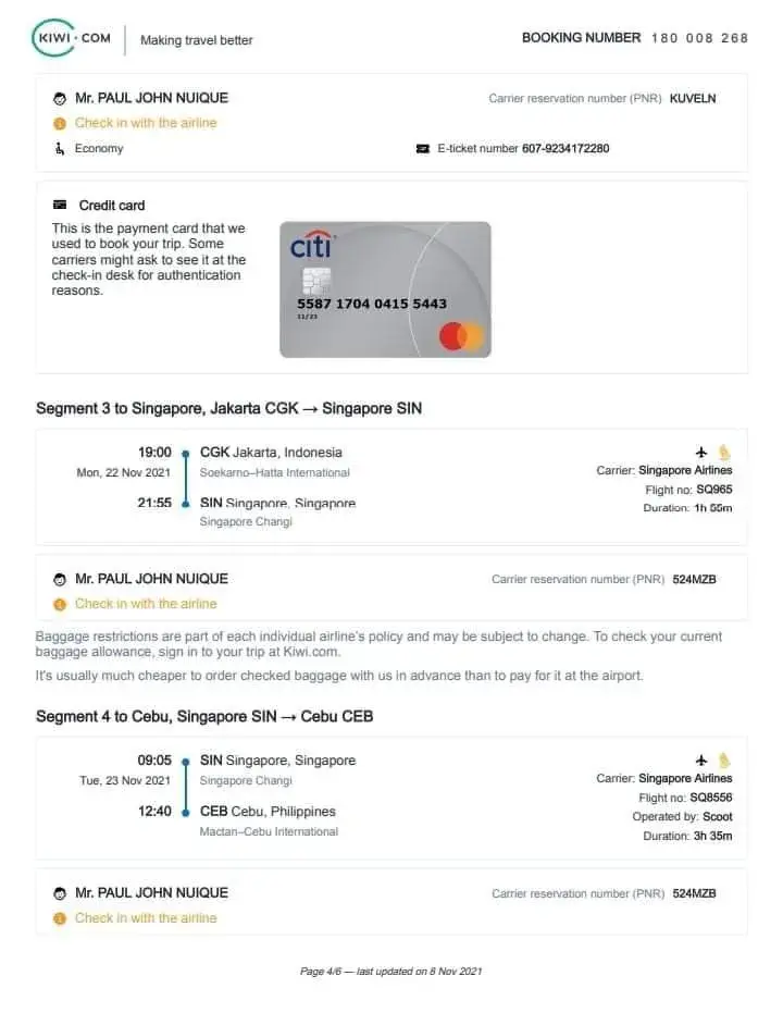 Kiwi BOOKING NUMBER - [protected]