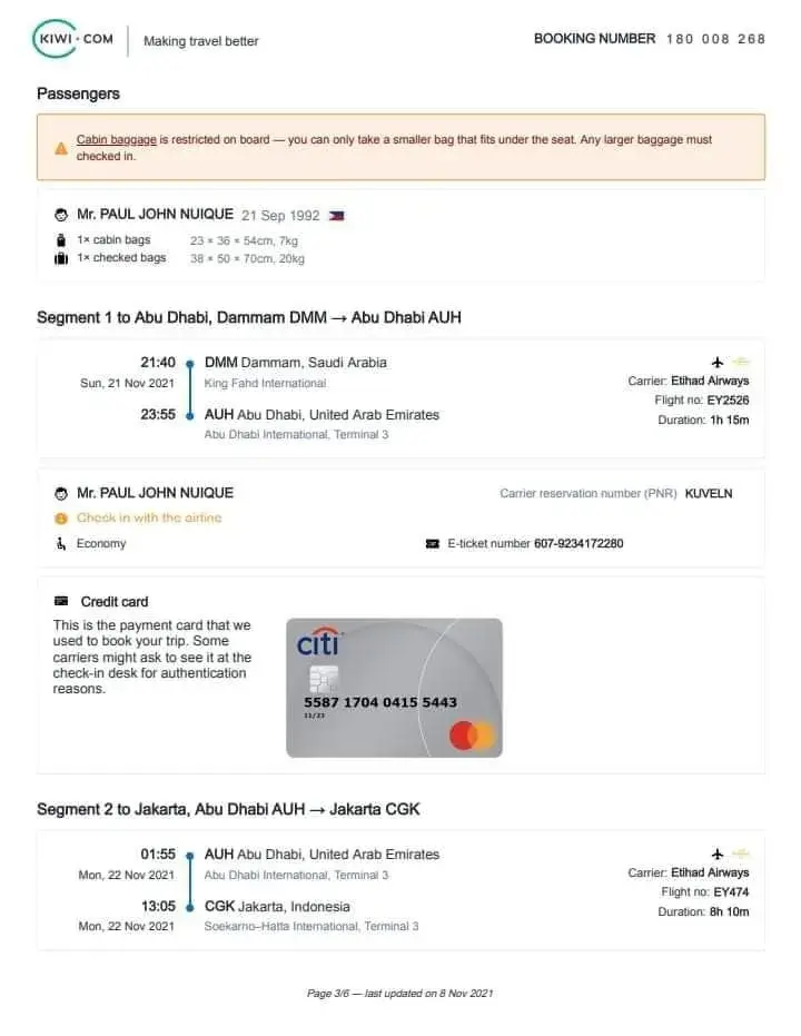 Etihad Airways Confirmation number - SOQBLQ and UGAJAY
