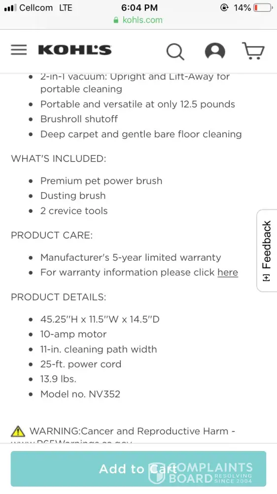 I ordered the SHARK NV352 from online for the main reason that your website had stated on the description that it comes with a pet power brush. The vacuum arrives, I assembled it and noticed there was no pet power brush. I contacted Kohls and spoke to someone outside the US that was of no assistance and all she could say was the item was deleted off your website so she could not look at the description. I have screen shots of your description for this product. I like the vacuum and do not necessarily want to return it. I just want the pet power brush that you had falsely advertised would be with this model vacuum when you posted it on your site.