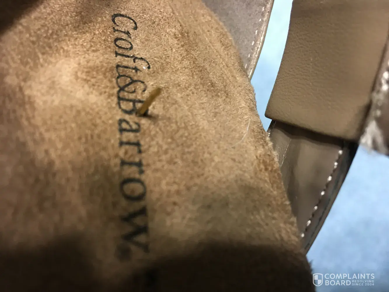When I got home I noticed a nail in the sole of the shoes sticking out inwardly.
