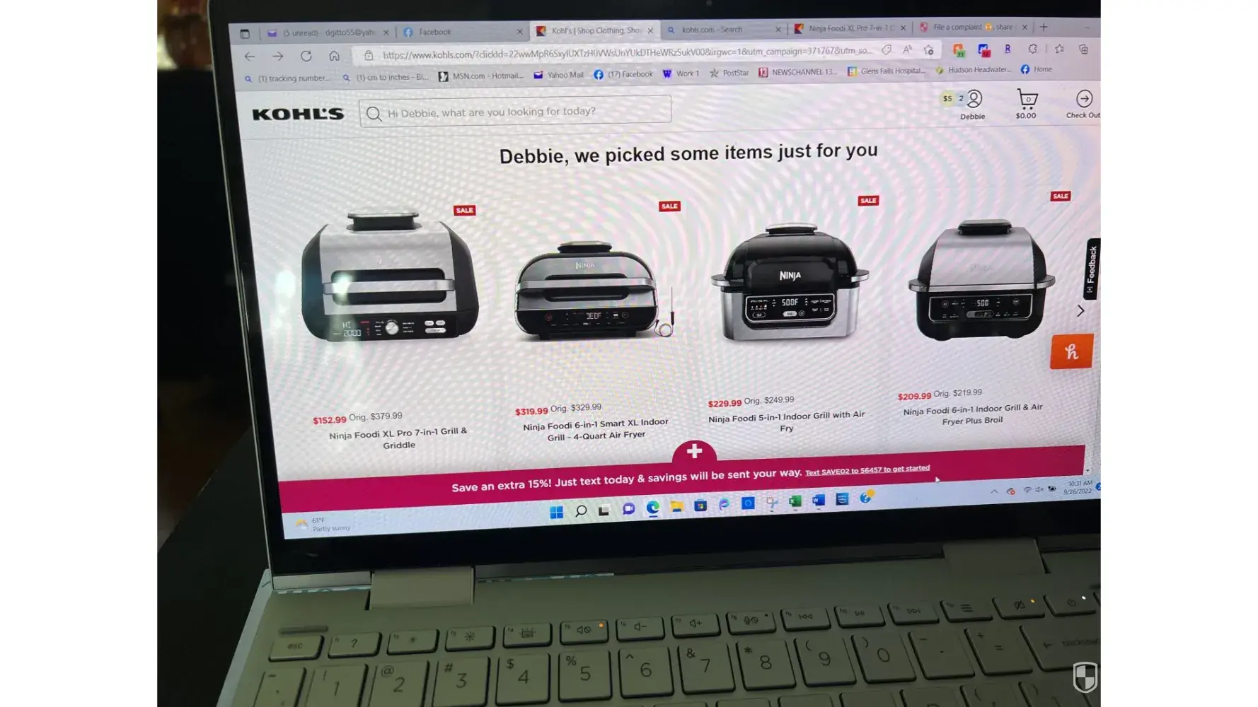 On 9/26/22 I went to Khol.com. The page offered the Ninja Foodi XL Pro 7-in-1 Grill & Griddle on sale for $152.99 original price $379.99. When I put it in my cart the price is $297.49 with coupons?