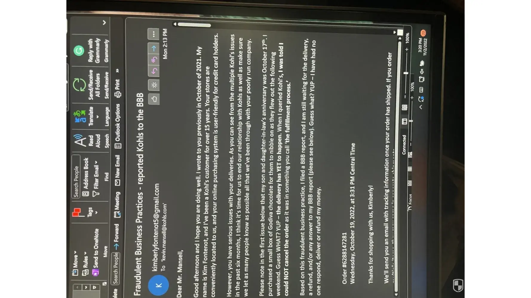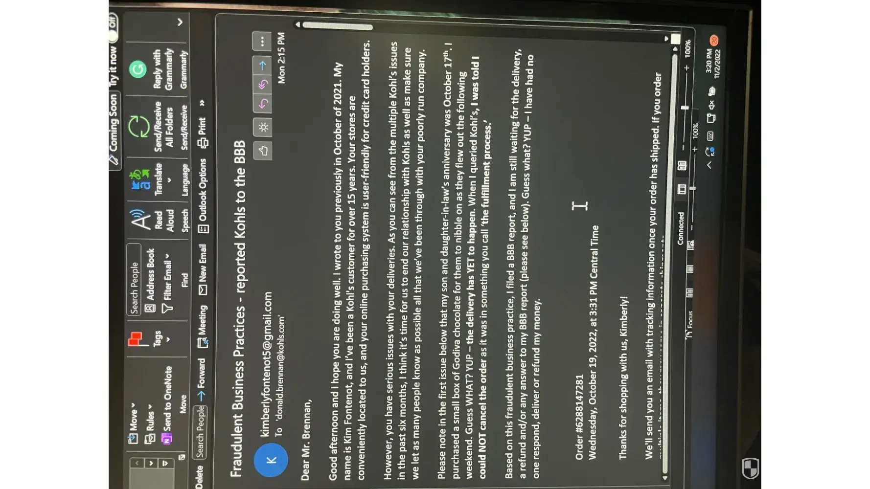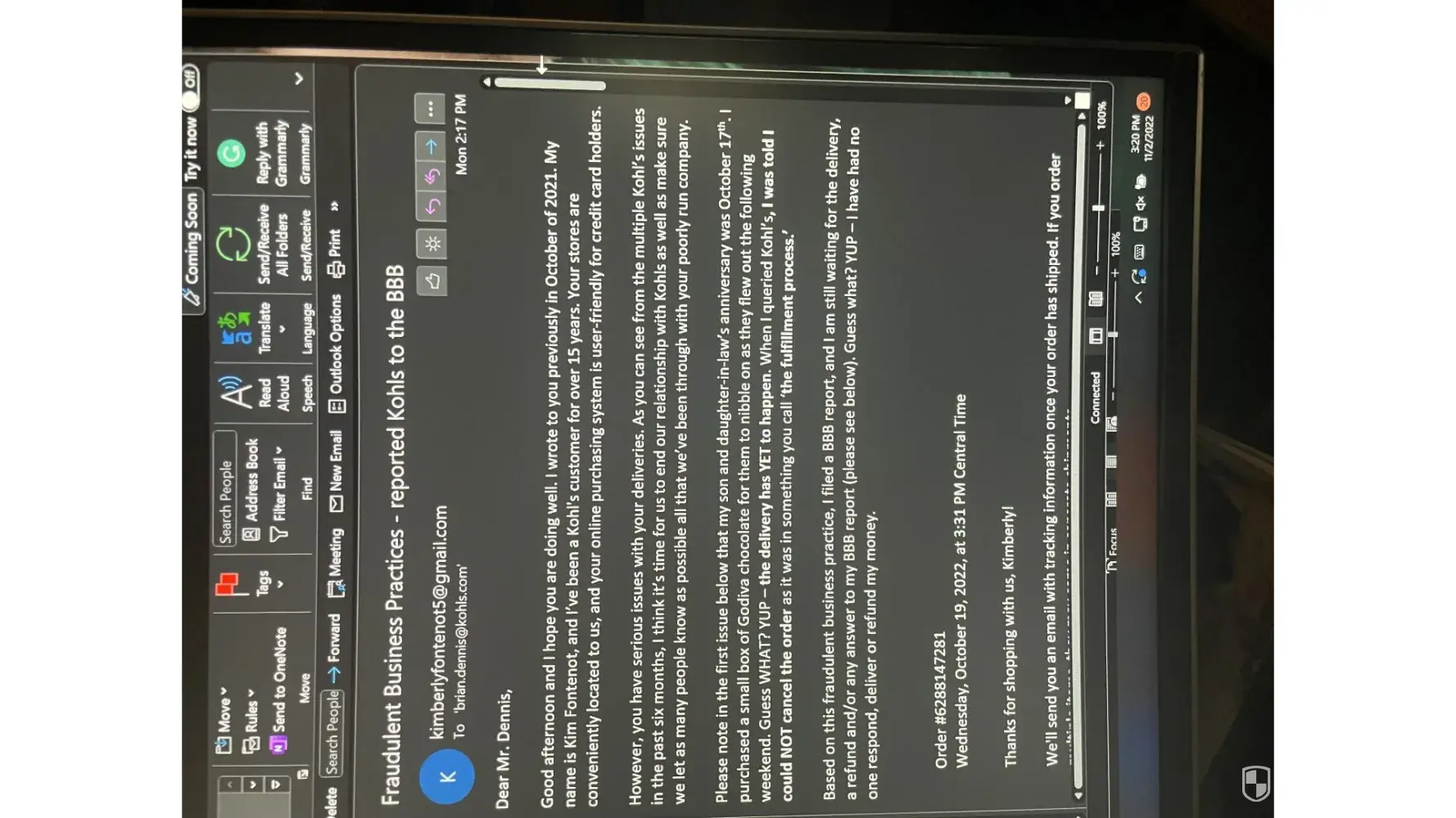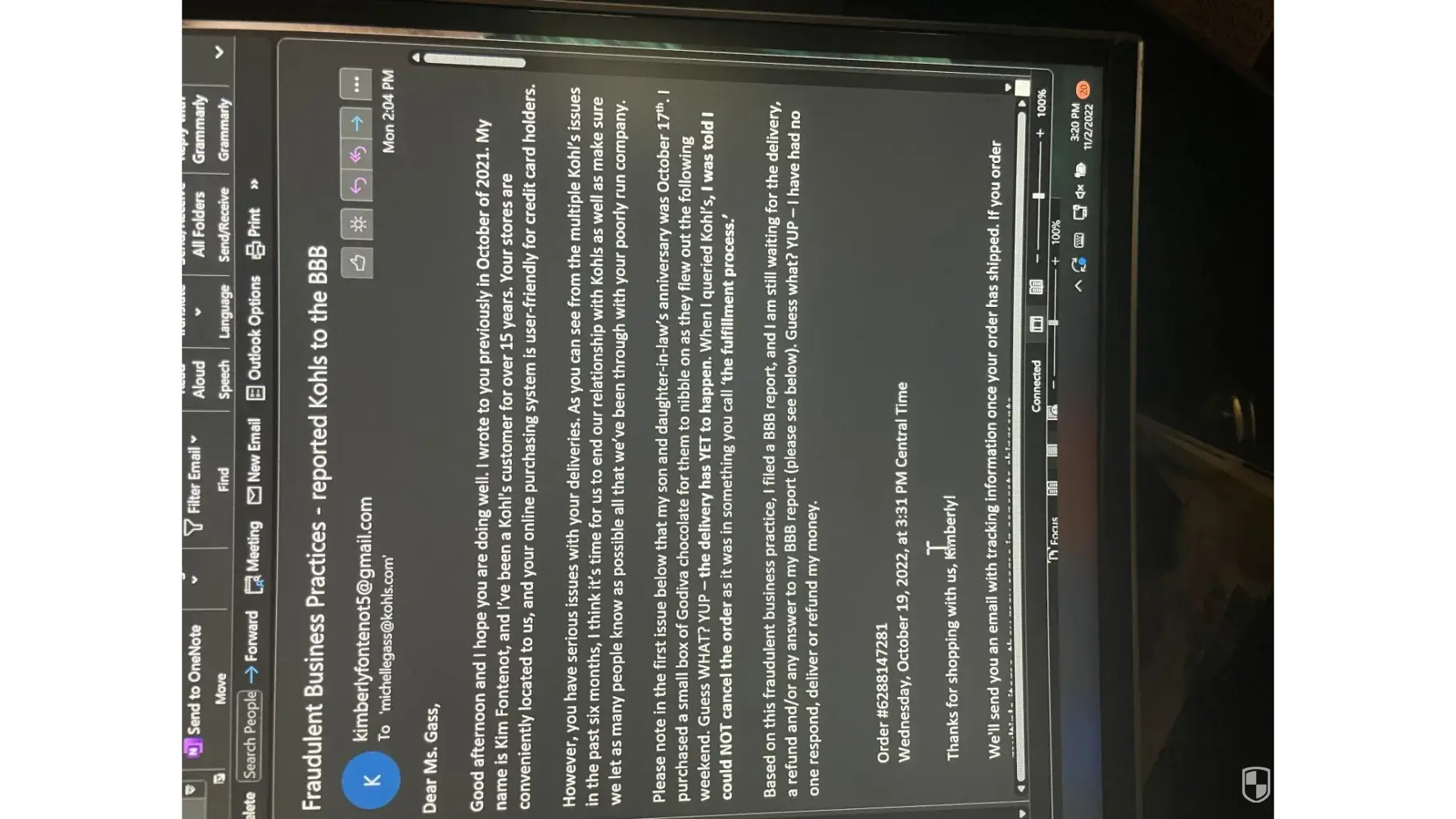 Also Kohls corporate legal member has lied so many times about the events that took place on 7/15 and it’s sickening that I as a customer am being treated like literal garbage when I AM THE VICTIM HERE!
