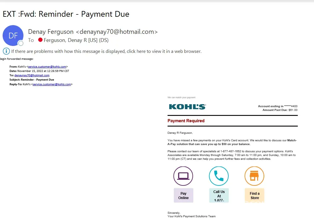 Kohl's Match a pay email from kohls