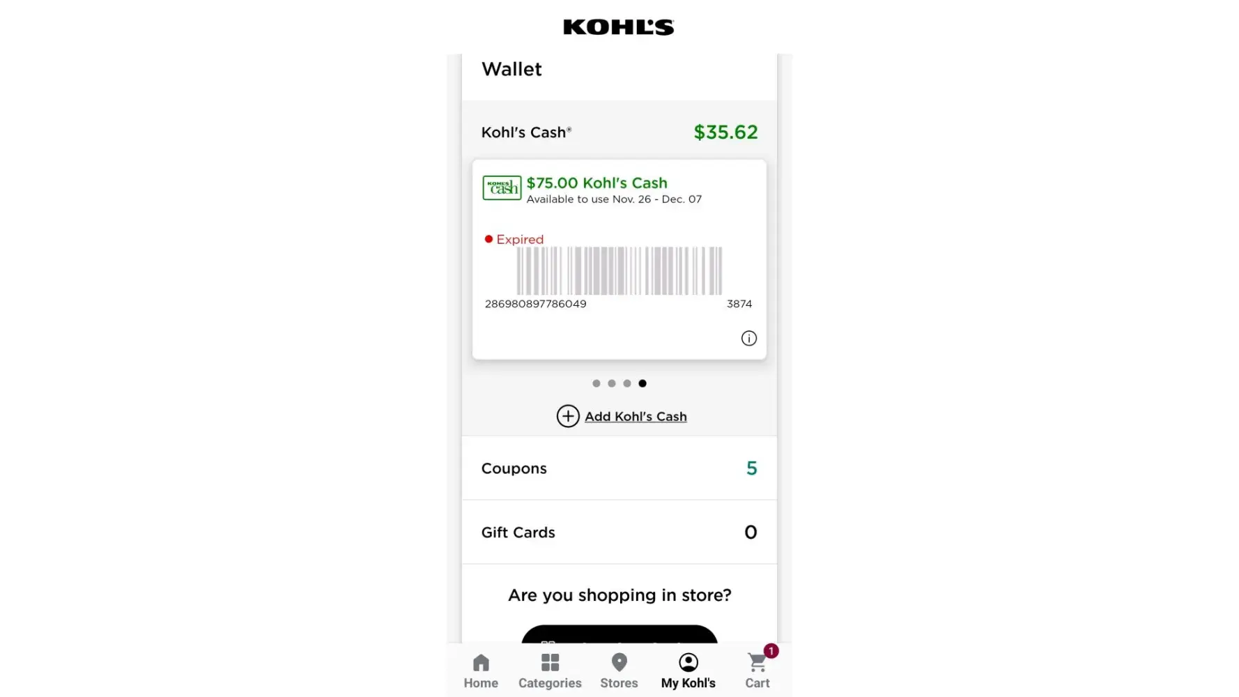 I just lost $75.00 in Kohls cash for being a day late which is insane. AND the rebate for the toaster I just bought is all screwed up so that's not going to haopen there goes $14.00. And don't get me started on 1 person in the service dept at this time of year when there are 5 people doing online orders at once. I am done shopping here. Nothing but the run around.