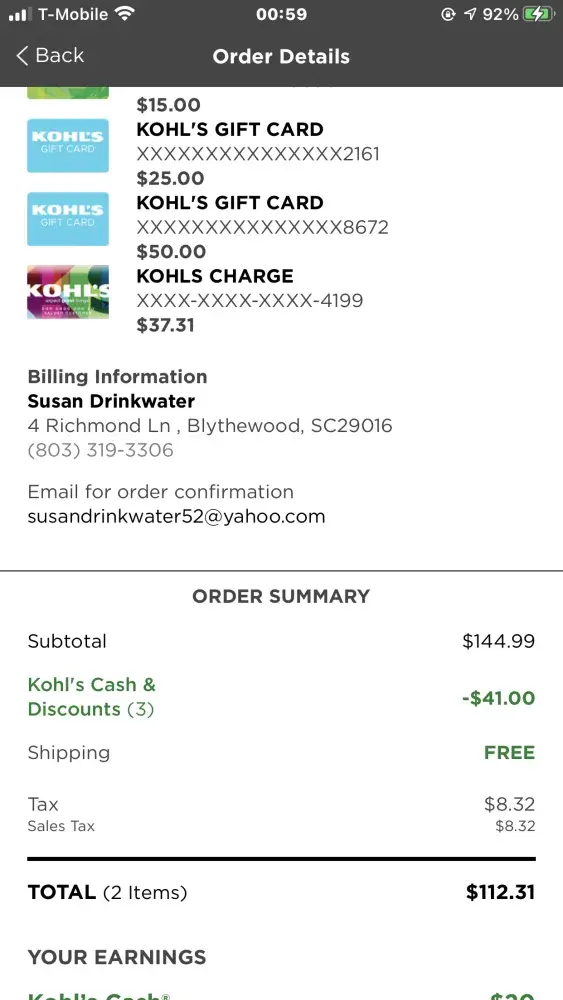 Erin from the kohls store gave me a call. We talked for a little bit, and we resolved the situation. She really seemed to care and understood what I went through. She was very professional and understanding to my situation. Thanks, Erin, for caring.