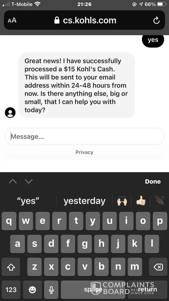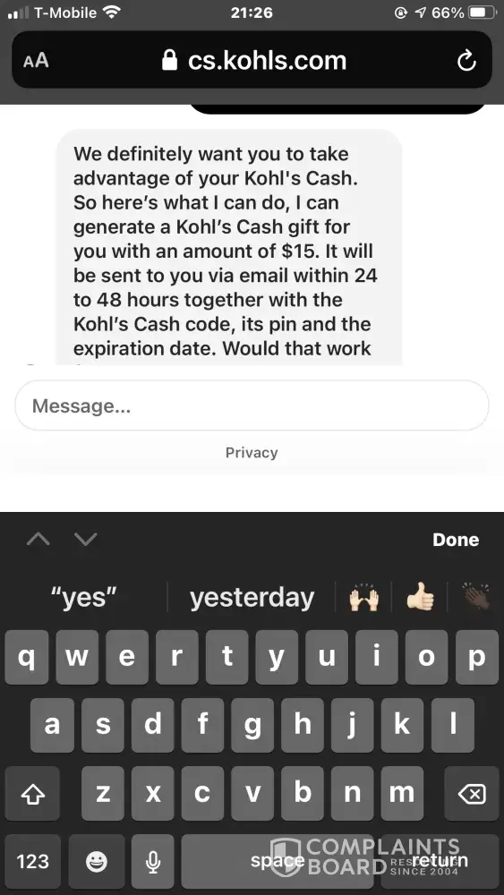 Customer service say they cannot do anything to help. Suuuuure, it's not like if you had full access to my Kohl’s account and could add $30 in there.