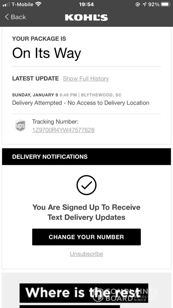 filed a compalint and hdqtrs called me yesterday dec 7th regarding UPS only delivered 2 of the 3 pkges for a bed. she very nicely indicated that I would get a response within 24 hours but have not heard yed yet. UPS has not located the 3rd pkge (70 lbs) so unless u can rectify it today please let me know - I left my 2 phone # cell is [protected] and land line is [protected] if not arriving thur or fri the please arrange to pick up the 2 pkges and issue a refund and reluctantly I'll have to order it via walmart or somewhere else. My kohls order # is above. Sorry to do this as I really do like Kohl's