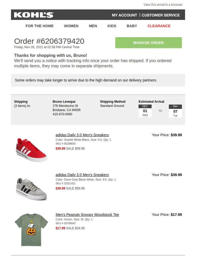 Decmber 1, 2021, Card # [protected], Order # [protected].