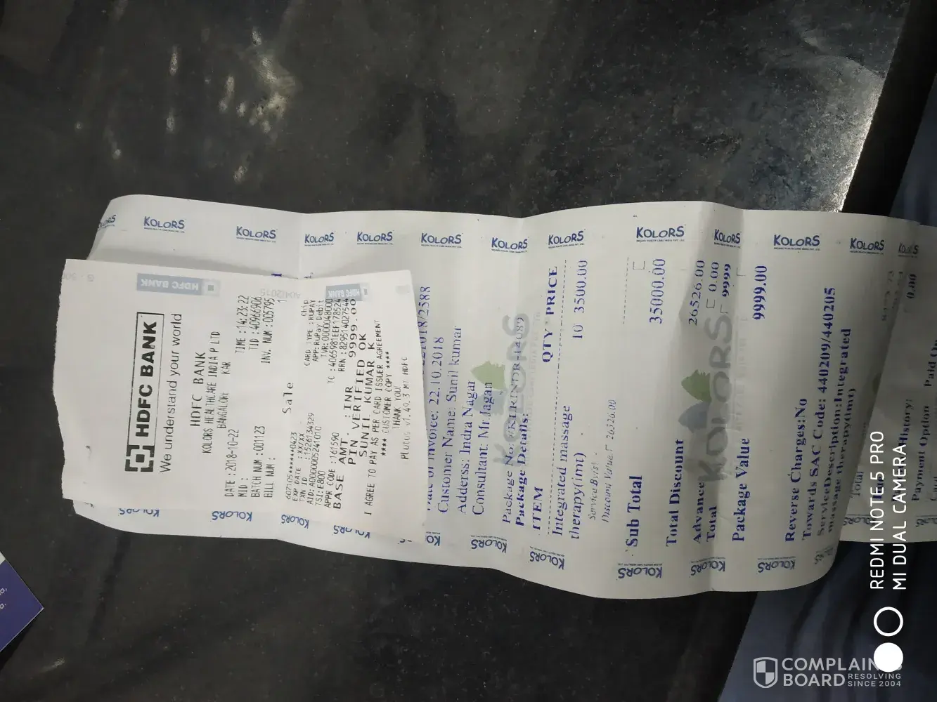 I have paid 92K through Credit Card and converted that into EMI for 12 months. (Pune Branch) I have taken only 9 sessions so far and due to my official work, I have to shift to Delhi. I asked them to pay the money back, since I won't be able to complete the treatment, as I am not available. The kind of answers I get is very disappointing. Replies from Kolors - 1. Please transfer the package to someone else. (I do not gave anybody to transfer and why should I, it was for me and not anybody else) 2. Convert the package to some other package. (When I am not going to be a localite, what do you expect me to do? Travel every week for the treatment from Delhi to Pune? Will you bear my flight tickets and cab expenses?) 3. We cannot refund because the deal is between the customer and Bank and I should ask the Bank to stop EMI. (Seriously? I mean, I paid through Credit Card, which is kind of a loan to me by Bank. Bank already paid Kolors the money, I am just repaying the bank for their money with interest. It's a simple logic. You need to refund the money to me, so that I can pay the bank and close the EMI.)