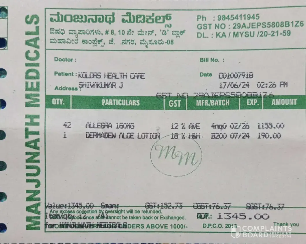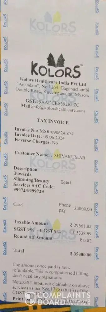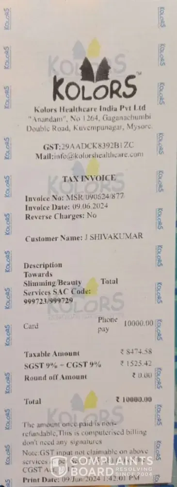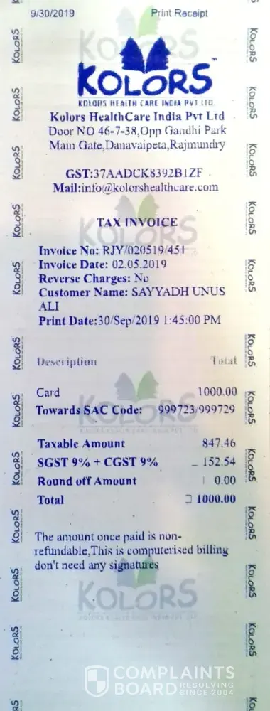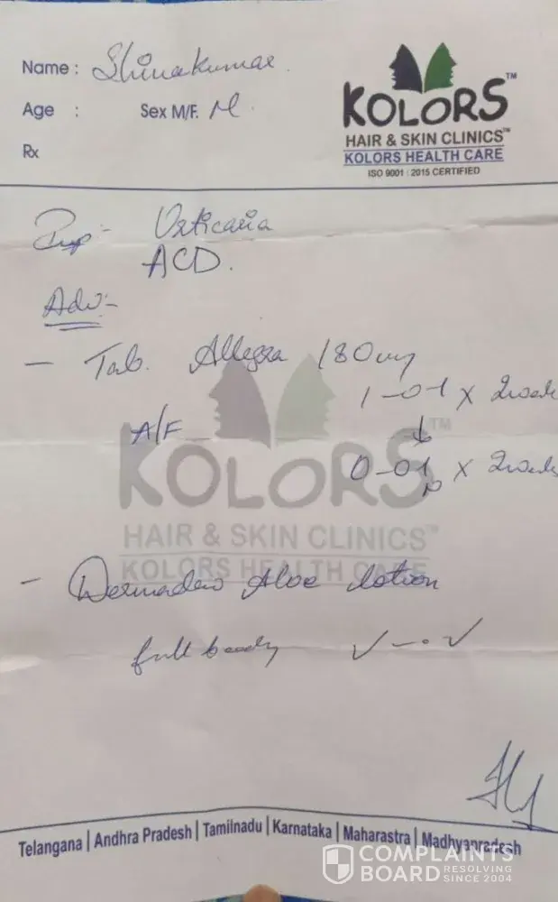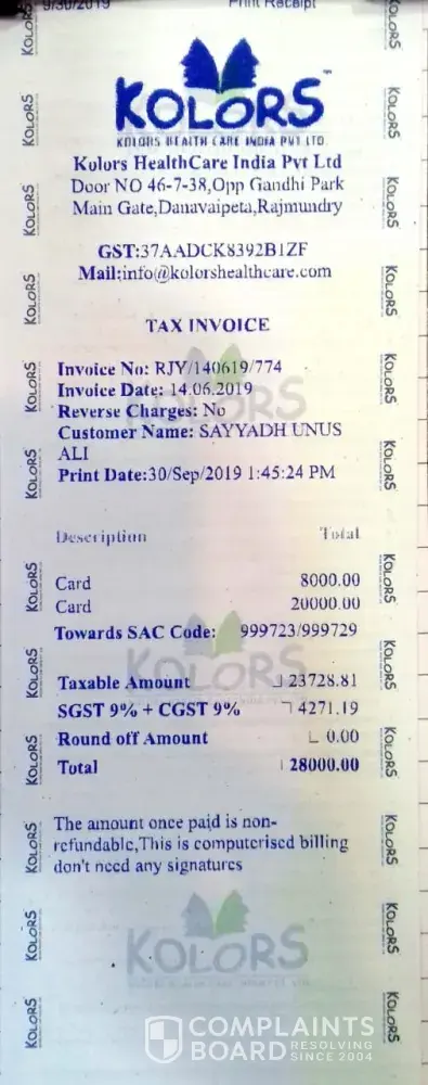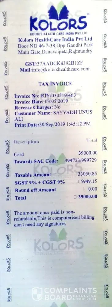 Kolors Health Care India has left an official reply on this complaint.