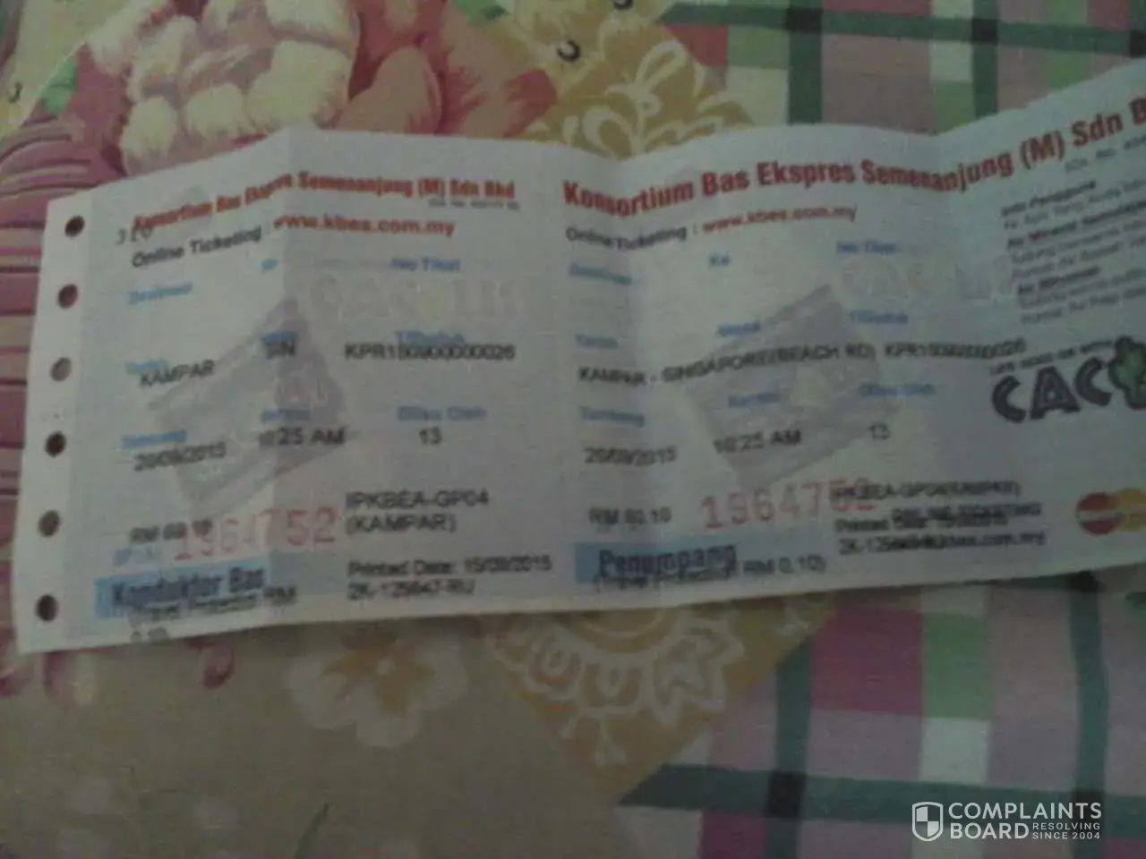 I bought a bus ticket for my son to travel from Penang to KL on 10/12/2009 at 4.30 pm. Three days before the travel date I went to the counter to change the ticket to 11/12/2009. My request was turned down and I had to buy a new ticket for him. The staff said he will try to sell the ticket for me. On 10/12/2009 my son went to the station to send his friends off at 4.30 pm and he saw the bus was full. Someone has bought the ticket and sat at his seat. When I wanted to claim my refund, I was turned down saying that the ticket was unsold.