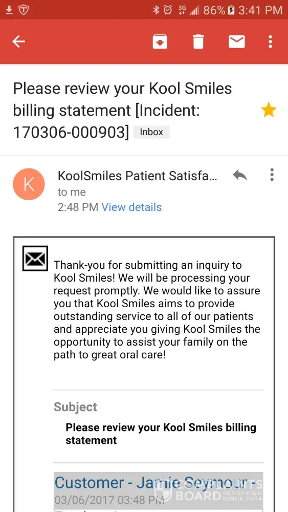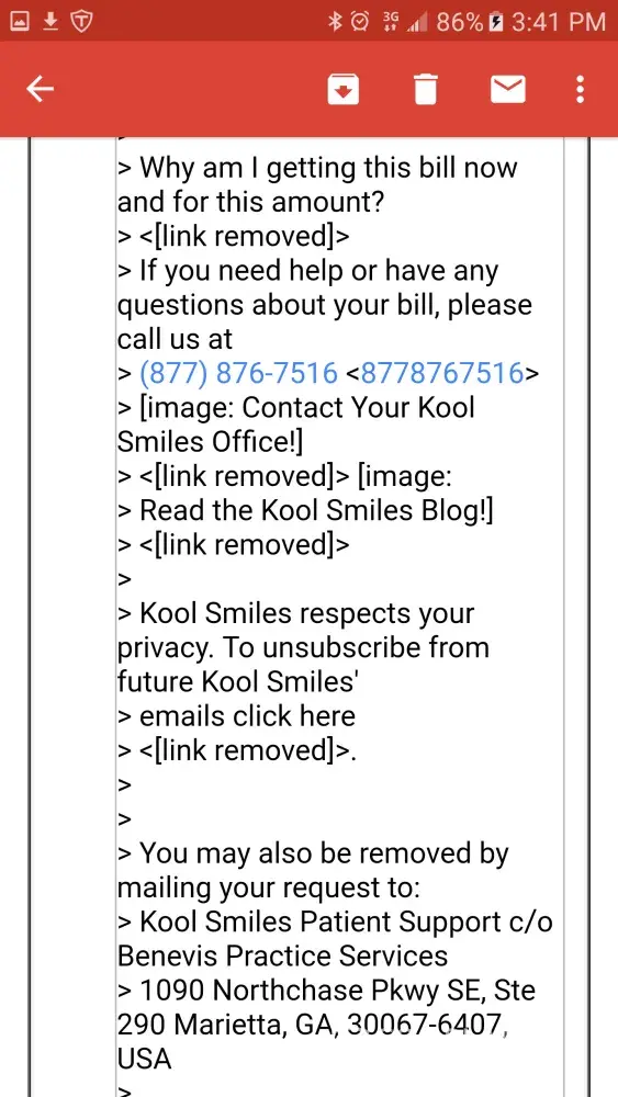 My son was previously a patient at Koop Smiles in Metairie. My insurance informed me that my dental was covered at 100%, yet I still received a bill from Koop Smiles. I contacted my insurance company and they said that they received incomplete paperwork from Kool Smiles. I contacted Kool Smiles, who informed me that they would resubmit completed paperwork. After contacting my insurance and going through this process about 3 times. I just decided to pay the bill out of frustration and fear of this being reported negatively on my credit. After making he payment and contacting Kool Smiles to be sure that I had a zero balance, I just received a second phone call from IC Debt collecting agency. I contacted Kool Smiles who assured me that I had a zero balance and this would be taken care of, but after seeing these reviews, of others with the same problem I have little hope. I am at the point of wanting to contact an attorney and file legal charges because this company is taking advantage of hard working people and their insurance companies.