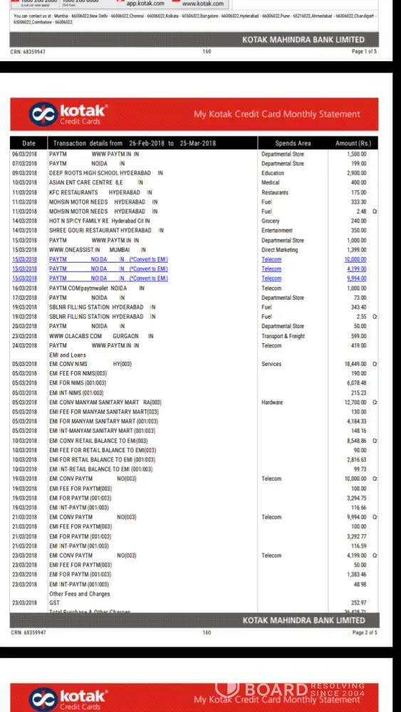 From that date lot of communication has been done with the bank but the above issue has not been resolved. I am attaching herewith communication held with bank for the same. Also attaching herewith Dispute report.
