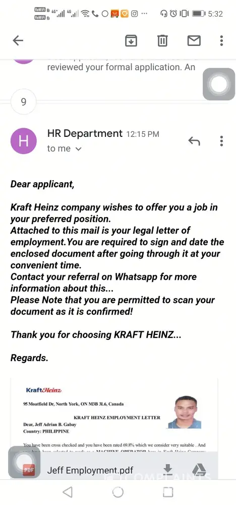 Hello good day. Im jeff. Actually i dont have any complain on this company. I just want to ask and verify thrse photo that i will send are legit or fake. Im really serious in finding a job but i dont know if this is legit or fake. Hopefully you can clarify this to me. Please help me. Thank you