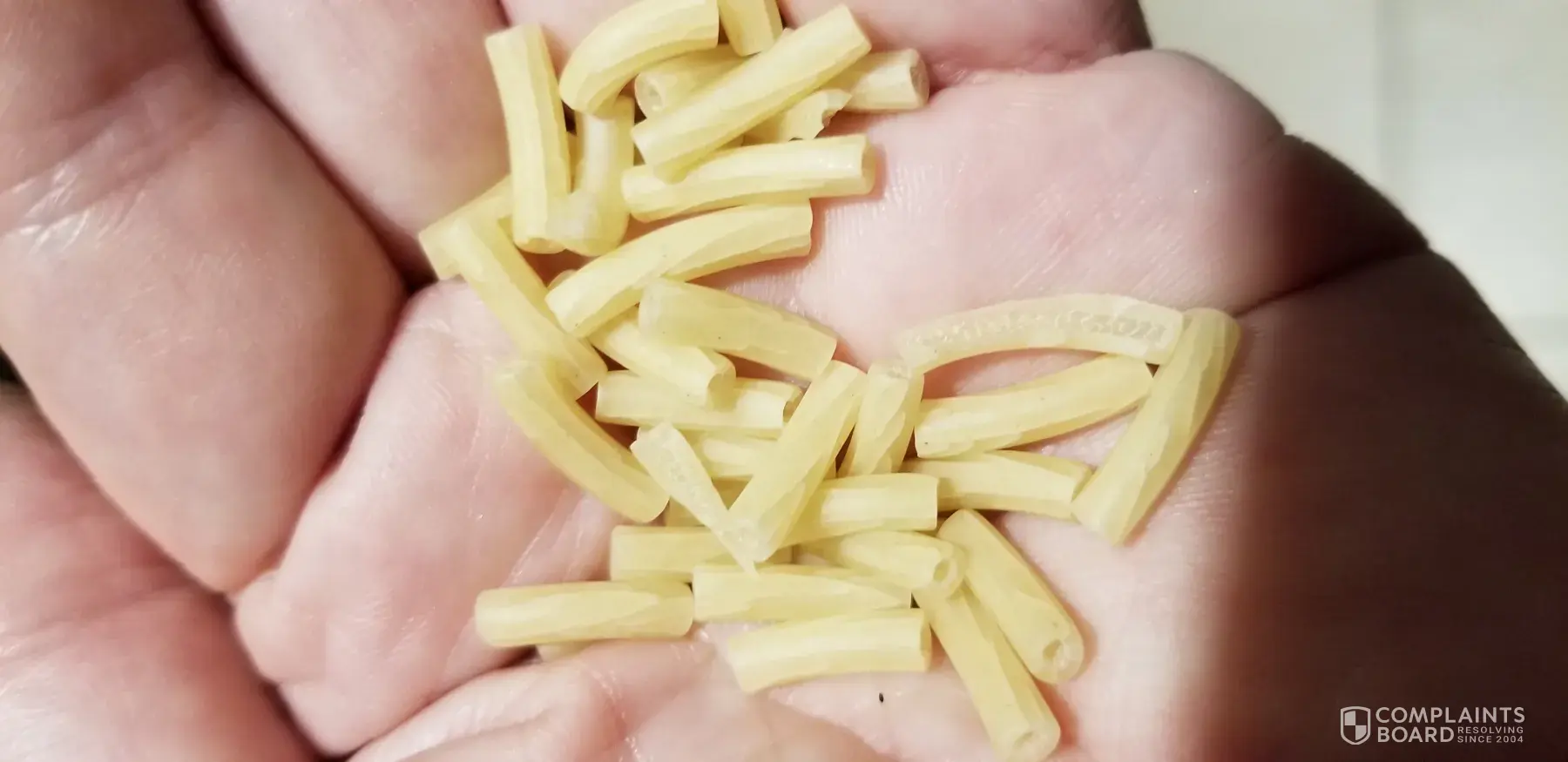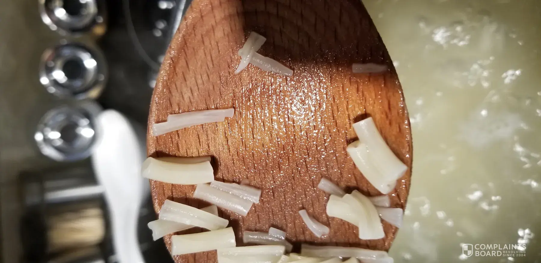 5/31/19 on this day I grabbed a box of the product from my cupboard. I had my 3 grandchildren over and was making it as part of their lunch. After the water started boiling, I dumped the box of shells in the water. Something else came out of the box with the shells. I am sending the picture. It appears to be a broken piece of wood trim. I just wonder how something that obvious would pass thru the inspection process. I feel the resolution should be more than the price of a box of the product. I'm requesting a $25 refund. Jeanette Niehm [protected]