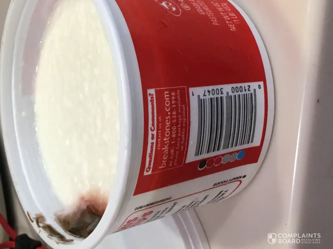 I recently purchased a container of my favorite cottage cheese from my local supermarket, Sudbury Farms in Sudbury MA. and was disgusted to fine a blob of what appears to be an black oily mass in the container. I opened the container today 08/16/17 . Obviously, it cannot be consumed and needs replacing, however, I need to know what this material is and if it represents a contamination beyond the single instance and potentially including all other containers manufactured at the same time. I would provide the photographs if there were a means to do so and will post them to your Facebook and other social media sites if necessary. Let me know how I should proceed.