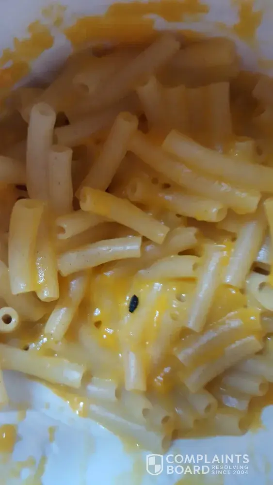 I bought a 12 pack of Mac and Cheese from Costco yesterday and when I made it I found a bug in it after stirring. See pictures attached. This will not deter our family from purchasing Kraft products but it is very disappointing as we were not at home when we made it and my son is a very picky eater. So, he ended up having a waffle for dinner, !which is not what he wanted - he's 6 years old.