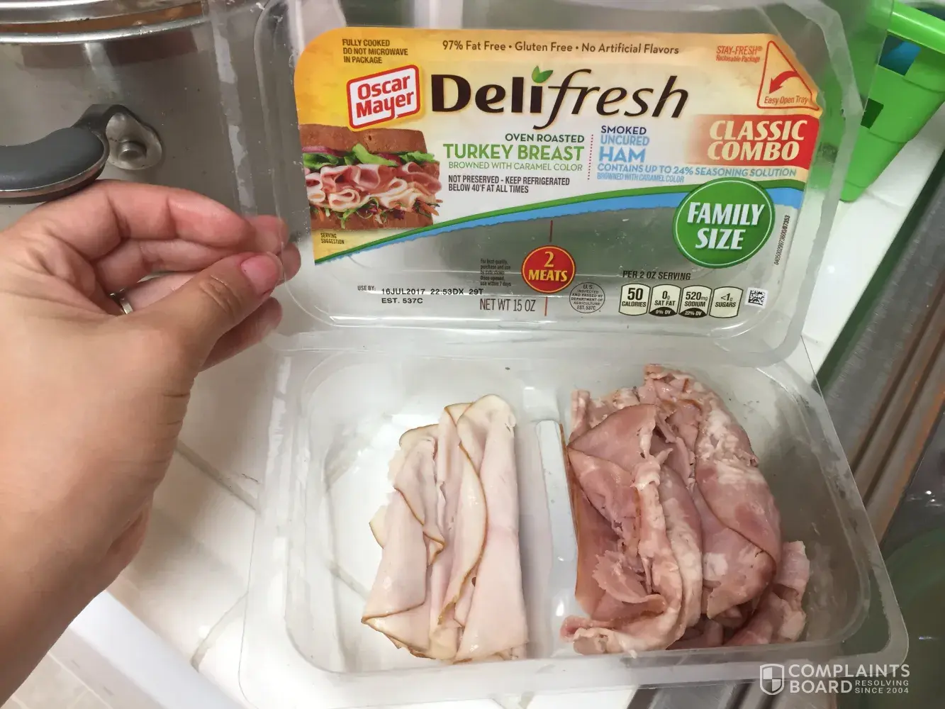 We bought the Kraft combo turkey breast and ham at Walmart. We almost always buy your product, but this time the ham was simply not edible. Once we opened the package, we found that the ham was not to the typical standards we've become accustomed to. It is gross and is mostly just fat.