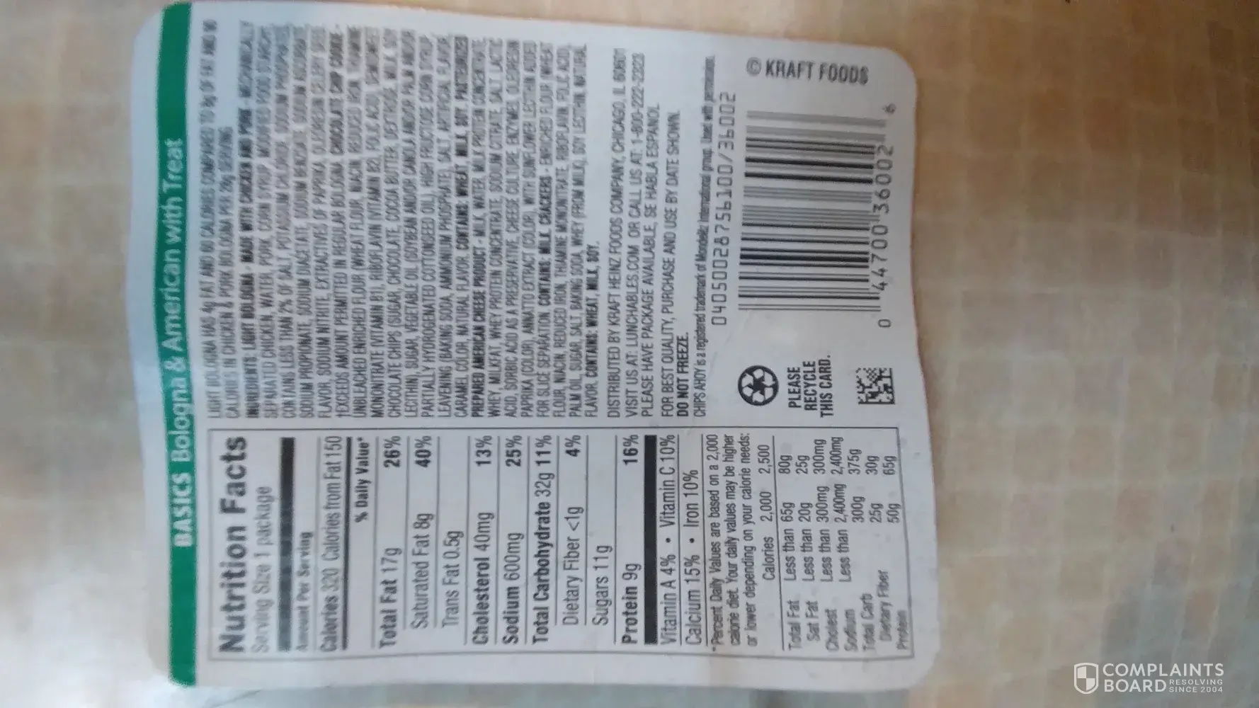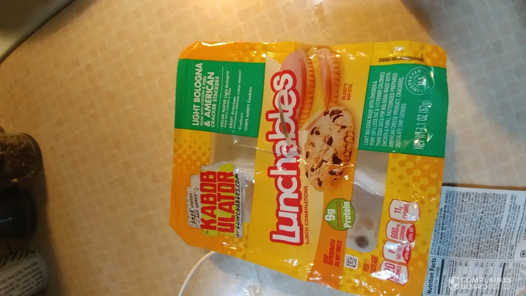 I bought a Lunchable actually about five Lunchables and in one of them there was this black soft look like maybe a reason it was in the the meat compartment I'm sure it wasn't supposed to be there so I can give you the barcode [protected].. somewhere your quality control messed up I could take pictures of it would like I can send them I don't see where I can attach them to this email.