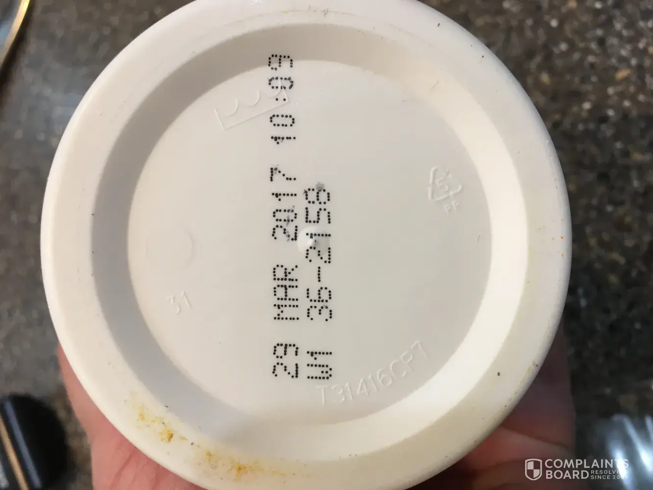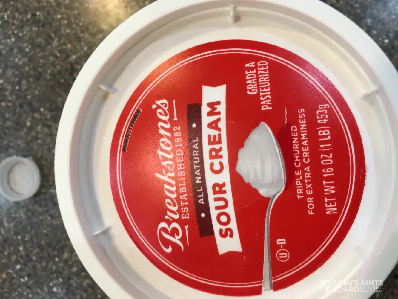 I want to bring your attention to something that I found in your sour cream today. It appears to be either glass or plastic. I didn’t strain the rest of it to find out if there was more in there. I noticed it when I made breakfast with 2 eggs and fresh spinach leaves. It couldn’t be in the eggs and highly doubtful it was in the washed spinach leaves.