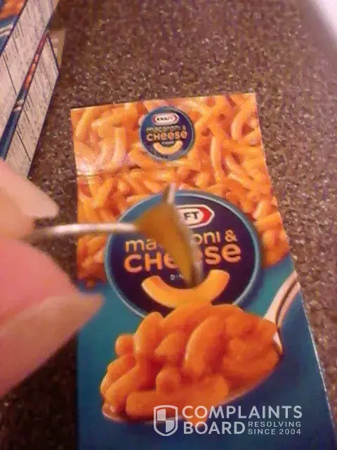 I mixed everything together using a wooden spoon, dished it out into plastic bowls and when I went to put salt on it I saw something shiny in my bowl. I took it out and it was a piece of wire. It disgusted me so bad that I wouldn't eat or let the kids eat any. If that's the kind of stuff we will be finding in Kraft products I don't think we will be buying anymore. I will make this public. Other customers need to be aware of what they may find. What if I would have just taken a bite and not looked before I started to shake the salt on? I am so glad I did look.