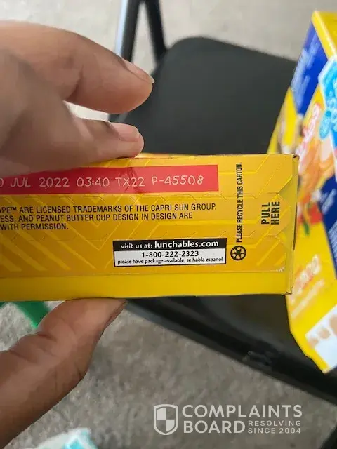 I have purchased multiple lunchable items with the incorrect contact and manufacturing location on them for about 3 months now. I have not been able to reach anyone to verify the packaging of my items. I believe these items are being tampered with remade and sold to various locations such as Walmart, HEB, and Target. In multiple lunchables without the drink the meat is wet and has a funny smell and the crackers are upside down inside the package. The ones with oreos come differently depending on purchase. Some say oreo while the others are of an off brand. I would like to know exactly if this is the way the products are made at your location which shows to be in Glenview not Chicago. Thank you