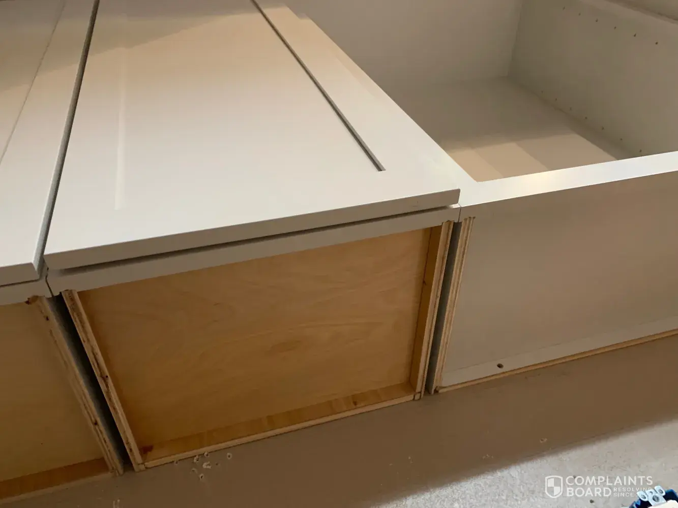 I installed everything, put Quartz countertops, as I am installing the sink some water got in the cabinet and in one of the drawers, the cabinet was fine as I paid extra for all-ply construction, but the drawer lifted, come to find out they are advertising 3/16" plywood drawer bottoms yet they are using laminated MDF.