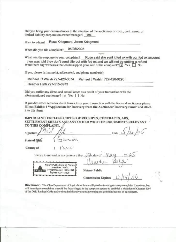 👉  Submit a complaint about Kriegmont Auction Company