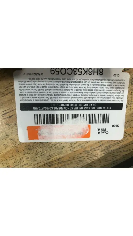 I purchased a $100 Home Depot Gift Card at Kroger Atascocita. It did not appear to be tampered with. I opened the package and the Card#/Pin# had a thick white glue that was difficult to remove. Kroger customer service opened a case file and escalated (stating they referred to Home Depot for refund and it was denied due to card had already been used).