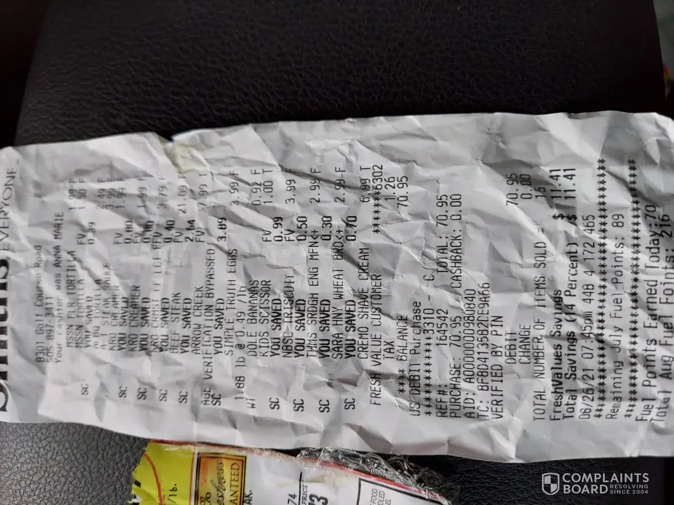On August 27, 2021 I purchased a package of top sirloin steak. I also purchased other items. When I brought the steak home and cooked them on the grill. Two of my guests took one bite and spit out the meat. The meat appeared to be contaminated. It was mushy almost like chopped steak in the middle. One of the steaks had this strange hole in the middle of the meat. The outside of the steak appeared to be find. The other two pieces of steak that were in the package were fine. One of my guest woke up the next day with a severe headache and nausea. I am attaching the product label and receipt for your review. I want to know if you have had issues recently with this product. I want to make sure the meat wasn't contaminated with something that will potential cause medical issues with my guests. I also would like a complete refund of all my groceries for that purchase since! My meal was ruined! $70.95