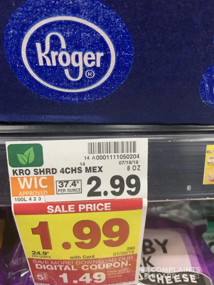 On Sunday, July 28, 2019 I was at the store located at 799 Truse Parkway in Memphis, TN, I attempted to purchase 2 bags of Mexican style shredded cheese as I always do just at a different Kroger. So when I got to the register and swiped my WIC card the cashier told me it wasn't taking off for the cheese. So she called the shift supervisor Mrs. Ann for...