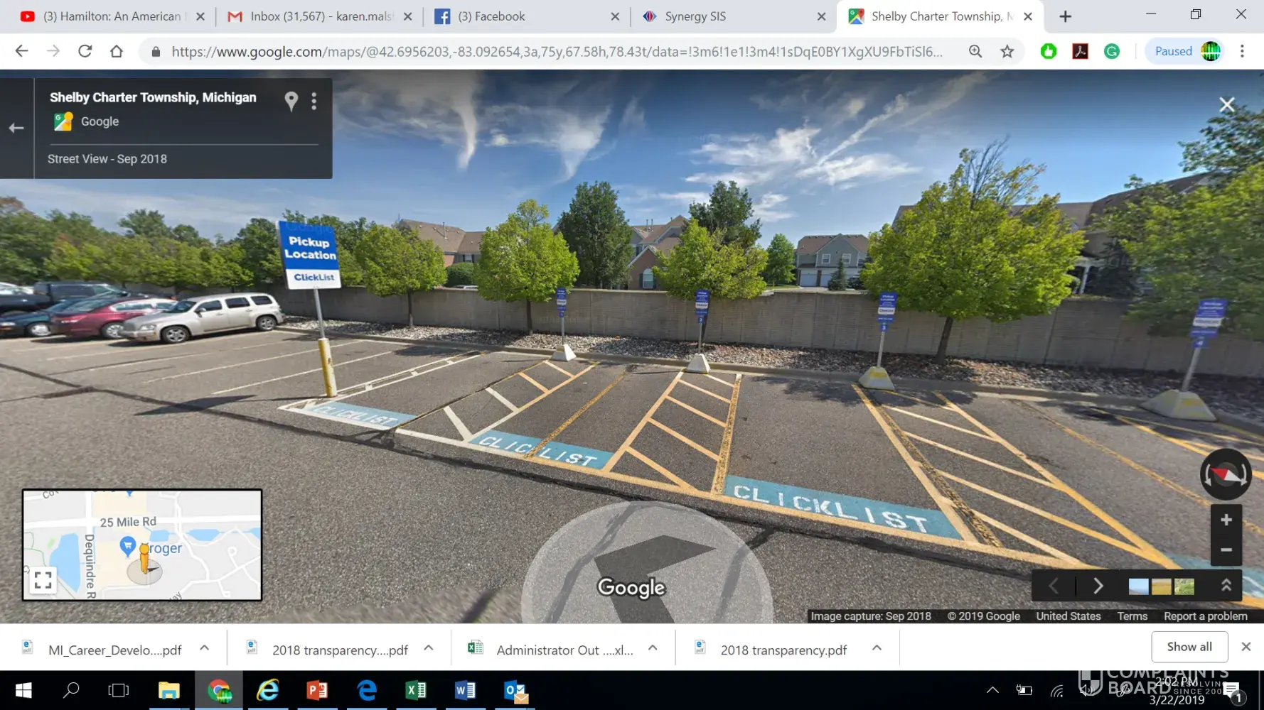 On Sunday March 17th, at approx. 4:45pm I was collecting groceries in the Click List Parking Bay Number 1 at The Kroger at 24 mile and Dequindre in Shelby Township. After my groceries were loaded by, Hannah, and my trunk closed I watch through the rear view camera your employees walk over to the next customer waiting in Bay 4. No vehicle was on the left...