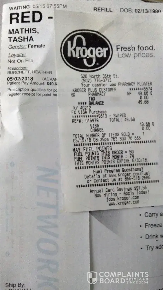 Kroger inaccurate prescription and price