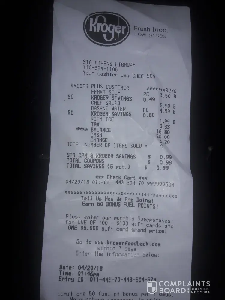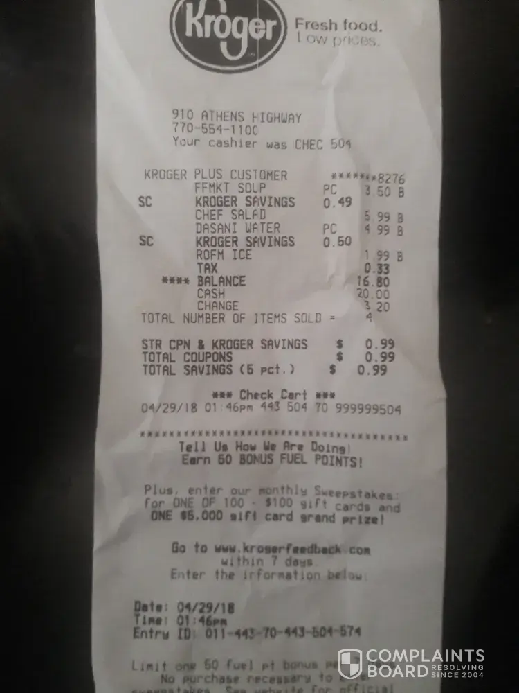 On 3/31/18 I bought a pack of variety Sweetwater beer from Kroger- 455 Grayson Highway, Lawrenceville, GA 30046. Number: [protected]